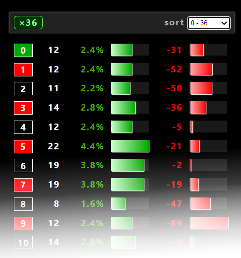 ルーレットの出目を数字ボタンから入力して行きます。
